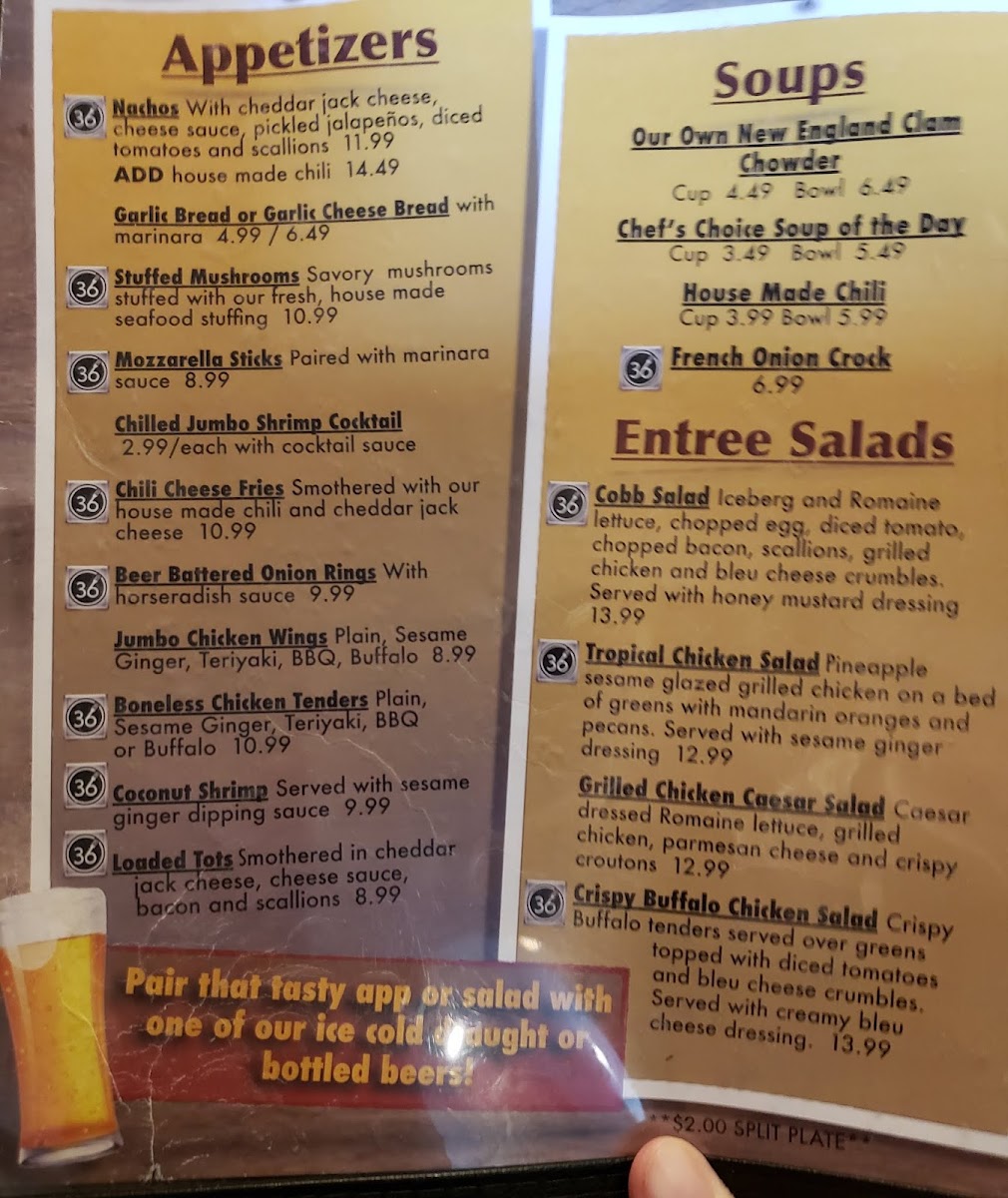 Guests rave about the hot lobster roll, featuring fresh lobster and served without mayo, allowing the ocean's flavors to shine. The comforting clam chowder and generous portions of dishes make every visit memorable. Not to mention, the service at 36 Town Grill & Tap has earned accolades, with attentive staff ensuring a delightful dining experience. Whether you’re enjoying the stuffed sole or indulging in a decadent brownie sundae, this restaurant promises to satisfy your cravings and leave you eager for a return visit.