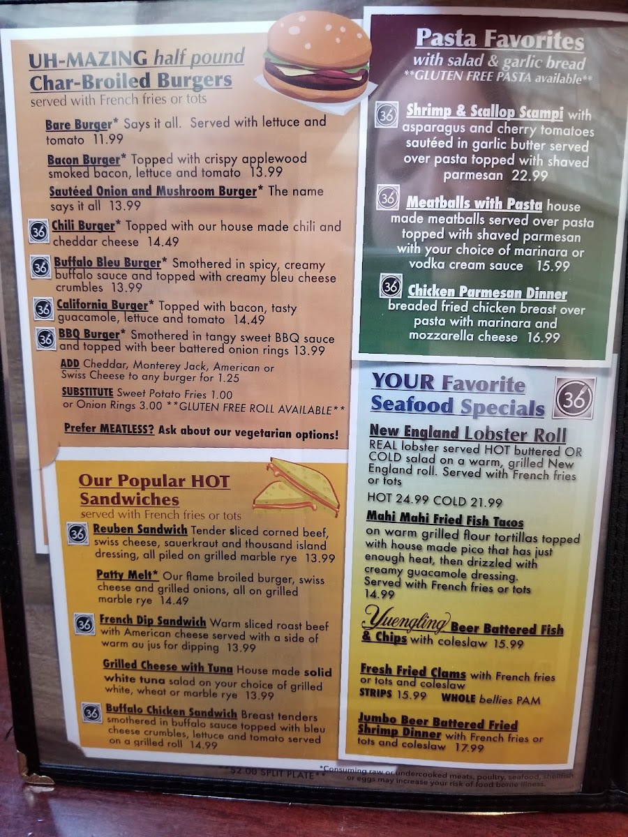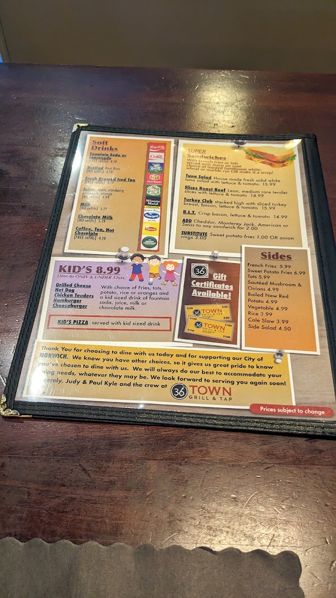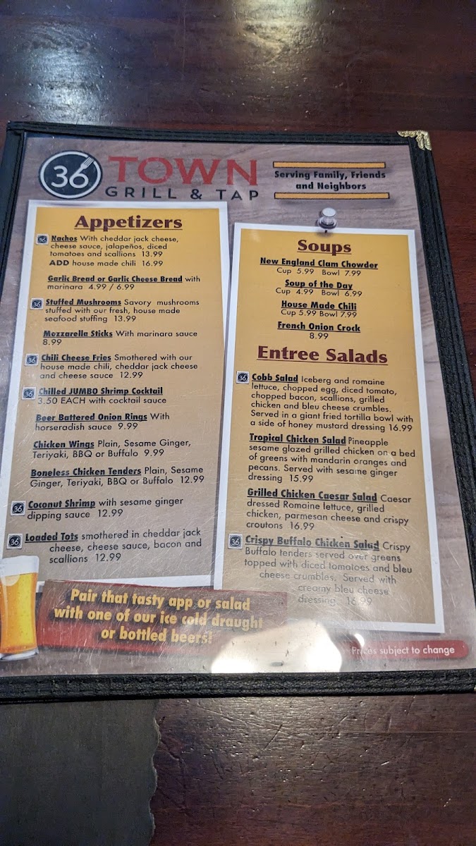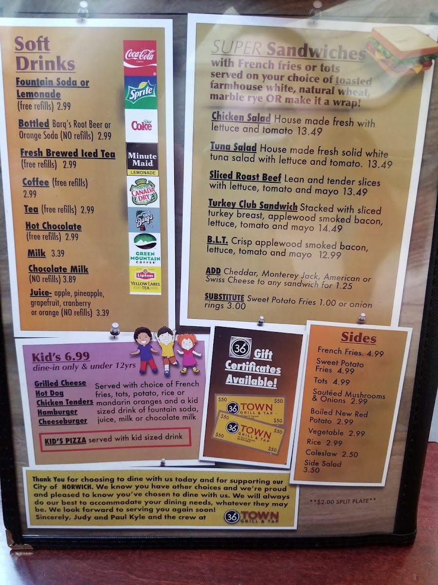 Welcome to 36 Town Grill & Tap, a culinary gem located at 42 Town St in Norwich, CT. This vibrant eatery is celebrated for its diverse menu that delights both locals and visitors alike. The standout dishes include the Prime Rib special, renowned for its perfect cook and savory flavors, and the lobster mac and cheese, a rich and delectable choice that leaves a lasting impression.